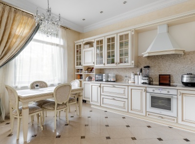 Продажа загородного дома общей площадью 605 кв.м. Коттеджный поселок Гринфилд. Новорижское шоссе, 23 км от МКАД. Коттедж построен в классическом стиле в 2 этажа. Стены из натурального кирпича. Под ключ. Обставлен элитной итальянской мебелью. Особый шарм особняку придают полукруглые комнаты: гостиная с камином, столовая на шесть персон, спальни. Для комфортного отдыха созданы: сауна, спортивный зал, бильярд. Приватная зона представлена 4 спальнями с ванными комнатами. Мастер-спальня занимает половину второго этажа.