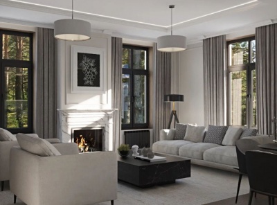Продажа загородного дома площадью 380 кв. м. Новорижское шоссе, 30 км от МКАД. Коттеджный поселок Грин Хилл. Дом двухэтажный, в состоянии white box. Архитектура дома показывает европейскую стилистику, а фасад с большим количеством окон предполагает просторное наполнение светом, широкий обзор участка и связь с природой. Просторные общественные зоны на первом этаже, приватные спальные комнаты на втором, всё продумано под комфорт семейной жизни.