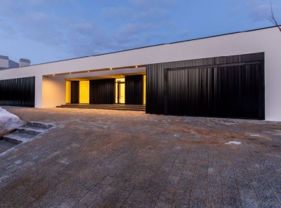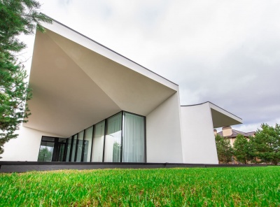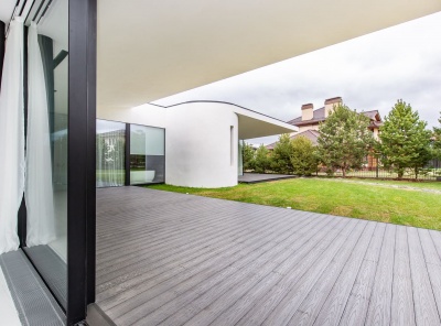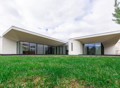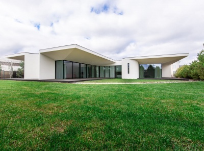 Продажа загородного дома общей площадью 400 кв.м. Новорижское шоссе, 19 км от МКАД. Коттеджный поселок Монтевиль. Дом построен в 1 уровень из кирпича. Кухня-столовая разделена камином с гостиной. Панорамное остекление. Из каждой комнаты свой выход на террасы, укрытые крыльями дома. Отдельный технический блок с квартирой для персонала. Гараж на 2 м/м. Участок 21 сотка правильной формы, проведен авто-полив, застелен газон. По периметру высажены сосны. Участок расположен в тихой части поселка, на второй линии от парка.
