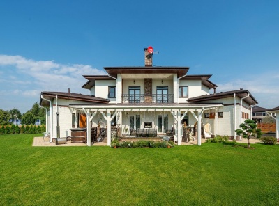 Продажа загородного дома площадью 350 кв.м. Новорижское шоссе, 23 км от МКАД. Коттеджный поселок Новорижский. Дом построен в 2 этажа из кирпича под ключ с мебелью. Выполнена качественная отделка в американском стиле с элементами эклектики. Дизайнерский свет, изготовленный на заказ. Меблировка от ведущих американских и итальянских производителей; часть предметов мебели и декора также выполнена на заказ. В доме эффектная архитектурная внешняя подсветка.