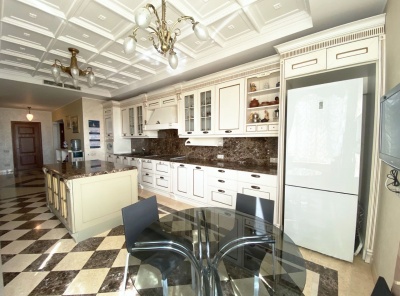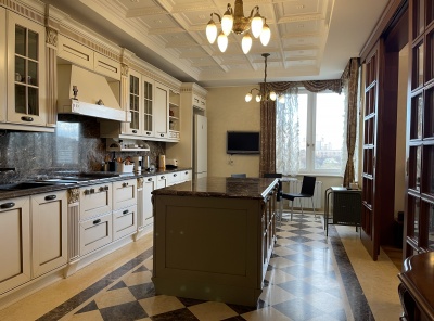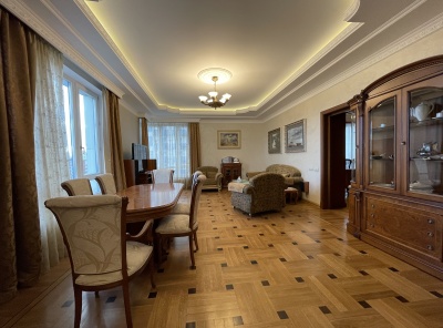 Продажа просторной 4-комнатной квартиры общей площадью 193 кв.м. Метро Ломоносовский проспект, 20 минут пешком. Улица Мосфильмовская, дом 70к6. ЖК Воробьевы Горы. Ремонт в классическом стиле. Квартира полностью меблирована и укомплектована всей необходимой бытовой техникой. Техника премиальных марок. Кондиционирование канальное - система Daikin. Кухонная столешница, подоконники, пол на кухне и в холле — натуральный мрамор. Кабинет отделан вишневым деревом из Италии. В гостиной, холле, кабинете антикварная мебель и люстры. Шикарные Виды на МГУ.