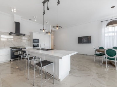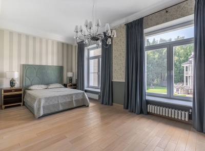 Продажа загородного дома общей площадью 980 кв.м. Новорижское шоссе, 19 км от МКАД. Коттеджный поселок Мэдиссон парк. Дом построен в 4 этажа, полностью меблирован и готов к проживанию. Участок 19 соток правильной формы, окружающая на нем территория благоустроена, вдоль ограждения уложен газон, смонтировано уличное освещение. Планировка:1 этаж - кухня-столовая , гостиная с камином, с/у, кабинет, кладовая, гараж на 2 м/м 2 этаж - мастер спальня с с/у и гардеробной, 2 спальни, каждая со своим с/у и гардеробными.