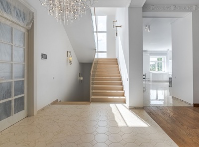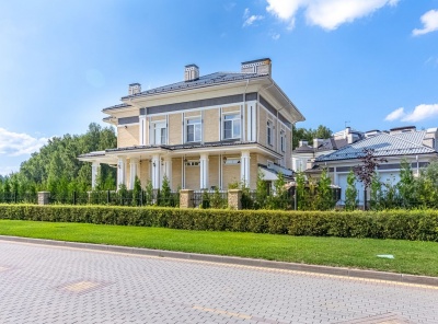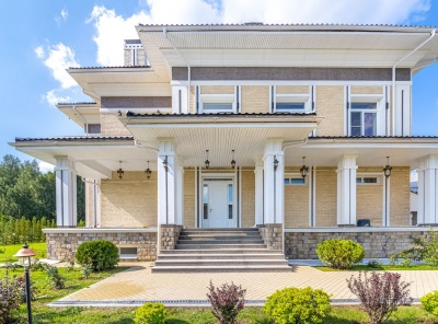 Продажа загородного дома площадью 1150 кв.м. Коттеджный поселок Раздоры-2. Рублево-Успенское шоссе 5 км от МКАД. Коттедж построен в современном стиле в 2 этажа. Фасад отделан песчаником и мрамором. Отделка под ключ без мебели. Панорамное остекление, высота потолков 4 метра, просторный холл со вторым светом 8 метров. В доме отличная spa-зона с бассейном, сауной и хамамом. Есть квартира для персонала с отдельным входом. Участок 21 сотка правильной формы на солнечной стороне с панорамным видом на лес.