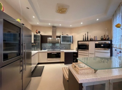 Продажа загородного дома общей площадью 310 кв.м. Коттеджный поселок Княжье Озеро. Новорижское шоссе, 24 км от МКАД. Дом построен в 2 этажа. На участке 15 соток выполнен ландшафтный дизайн, газон, хвойные деревья по периметру, вечерняя подсветка.Планировка: 1 этаж - гостиная с выходом в столовую и кухню, гостевая спальня со своим с/у и ванной комнатой, постирочная, котельная,2 этаж - мастер-спальня со своим с/у и гардеробной, 2 спальни со своей гардеробной и с/у, кабинет.