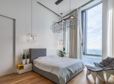 Продажа 3-комнатной квартиры, площадью 161 кв.м. Метро Минская, 4 минуты на транспорте. Адрес: ул. Мосфильмовская д.8. ЖК Дом на Мосфильмовской. В квартире выполнен ремонт в современном стиле с дизайнерскими элементами. Квартира полностью меблирована и укомплектована всей необходимой бытовой техникой и сантехникой. Приточно-вытяжная система вентиляции. Панорамные окна в пол открывают шикарные виды на город. В квартире высокие потолки и установлены стеклянные перегородки, которые визуально расширяют пространство.