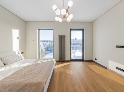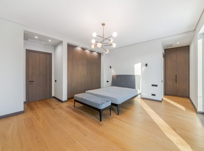 Продажа загородного дома общей площадью 500 кв.м. Новорижское шоссе, 19 км от МКАД. Коттеджный поселок Ренессанс Парк. Коттедж построен в 2 этажа на участке 18 соток. Выполнена дизайнерская отделка под ключ с мебелью. Планировка1 этаж - прихожая, гардеробная, гостиная, кухня, столовая, с/у, постирочная, гараж на 2 м/м.2 этаж - холл, гардеробная, 4 спальни с с/у, помещение для персонала.