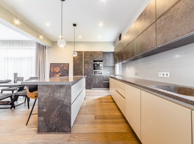 Продажа загородного дома площадью 285 кв.м. Новорижское шоссе, 23 км от МКАД. Коттеджный поселок Новорижский. Дом (дуплекс) построен в 3 этажа под ключ с мебелью. Фасад выполнен в дагестанском камне. Все коммуникации разведены (материалы премиум класса). Полы- инженерная доска (американский орех), итальянская штукатурка Oikos, Итальянская кухня: Valcucine -фасад массивa Зебрано+ Эмаль, Камин, встроенная немецкая техника.Люстры производства Италия, Германия. Профессиональная Водоочистка (по анализу воды.)Первый этаж - теплые водяные полы.