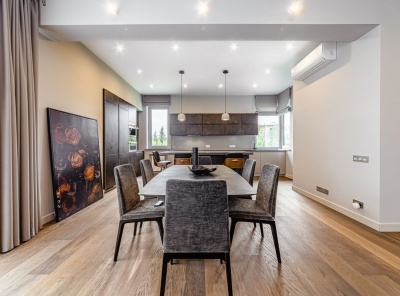 Аренда 4-комнатной квартиры площадью 200 кв.м. Метро Славянский бульвар, 5 минут транспортом. Улица Староволынская, дом 15к3. ЖК Ближняя Дача. Квартира полностью меблирована и укомплектована всей необходимой бытовой техникой от ведущих мировых производителей. В квартире выполнен дизайнерский ремонт из экологически чистых материалов. Система кондиционирования. Подогрев полов. Окна выходят во двор. На подземном паркинге одно машино-место входит в стоимость.Планировка: кухня-гостиная 60 кв.