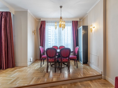 Аренда 4-комнатной квартиры площадью 200 кв.м. Метро Университет, 5 минут на авто. Улица Мосфильмовская, дом 70к5. ЖК Воробьёвы Горы. Большая, светлая квартира в классическом стиле. Пространство разделено на несколько функциональных зон. Две просторные спальни, плюс дополнительная комната которую можно использовать под кабинет, либо как дополнительную спальню. Просторная кухня с обеденной зоной. Квартира оборудована всей необходимой бытовой техникой. Планировка: кухня-столовая, гостиная, 2 спальни, 2 санузла, кабинет.