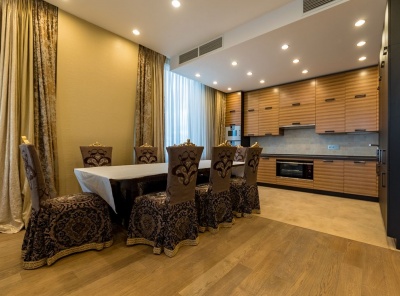 Аренда 4-комнатной квартиры площадью 210 кв. м. Метро Минская, 7 минут пешком. Улица Мосфильмовская, дом 70к7. ЖК Воробьевы горы. Квартира полностью меблирована и укомплектована всей необходимой бытовой техникой от ведущих мировых производителей. Ремонт в современном классическом стиле. Подогрев пола. Приточно-вытяжная вентиляция. Кондиционирование. Панорамные виды на МГУ, Мосфильмовский пруд. На подземном паркинге 1 машиноместо.Планировка: Кухня-гостиная-столовая, 2 спальни, кабинет, 2 с/у, 2 гардеробные, постирочная.
