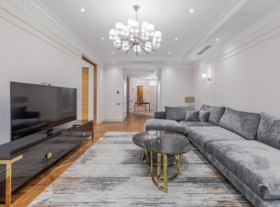 Аренда 3-комнатной квартиры площадью 106 кв.м. Метро Ломоносовский проспект, 20 минут пешком. Мосфильмовская 8. ЖК Дом на Мосфильмовской. Квартира полностью меблирована. Шикарный дорогой ремонт в стиле Барокко. Высокие потолки -3.3 м. Удобная планировка. Из окон открывается вид на Мосфильм, природный заказник Долина реки Сетунь, гольф-клуб. Планировка: кухня-гостиная, 2 спальни, 2 с/у.