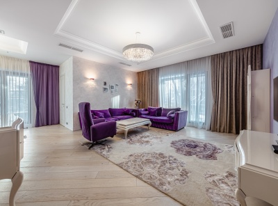 Продажа загородного дома площадью 420 кв.м. Новорижское шоссе, 23 км от МКАД. Коттеджный поселок Новорижский. Дом построен в 2 этажа из газоблока в стиле хайтек. Интерьер выполнен в современном стиле с панорамным остеклением. Все коммуникации разведены, первый этаж - теплые водяные полы. В котельной медная опресовка. Участок 15 соток в центре поселка, правильной формы. Ведутся работы по ландшафту. Парковка на 4 м/м, отдельностоящий гараж 60 кв.м. на 2 м/м. Все коммуникации центральные.
