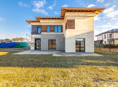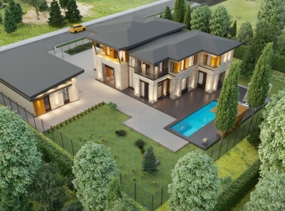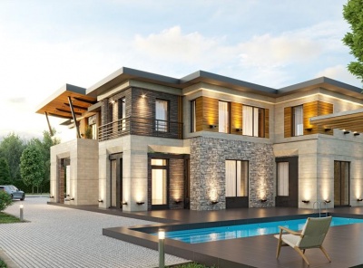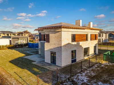 Продажа нового загородного дома площадью 400 кв.м. Новорижское шоссе, 23 км от МКАД. Коттеджный поселок Новорижский. Дом построен в 2 этажа из кирпича в современном стиле. Фундамент - монолитный железобетон (сваи + ростверк); стены и перекрытия - кирпич, газобетон, монолитный железобетон; кровля - черепица DOCKE ; фасад - природный камень (песчаник), элитный клинкер (Германия), планкен (кумару). Архитектурная подсветка фасада. Высокое качество строительства. Участок 13 соток, высажен газон. Все коммуникации центральные.