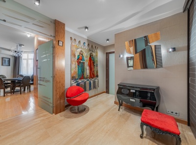 Продажа 3-комнатной квартиры площадью 110 кв.м. Метро Сокол, 5 минут пешком. Чапаевский переулок, дом 3. ЖК Триумф Палас. В квартире выполнена качественная дизайнерская отделка в современном стиле. Кухня полностью укомплектована всей необходимой бытовой техникой. Одна спальня со своим санузлом и вторая спальня (кабинет). В холле - гардеробная комната и шкаф-купе. Два полноценных санузла (в одном джакузи, во втором - душевая кабина) оснащены качественной европейской сантехникой. Установлен кондиционер. Окна выходят в тихий двор.