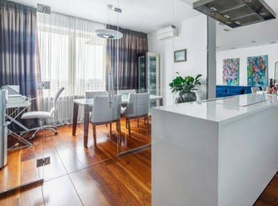 Продажа 3 комнатной квартиры, площадью 110 кв. м. Метро Минская, 10 минут пешком. Улица Минская д. 2. ЖК Долина Сетунь. Ремонт выполнен в современном классическом стиле из экологически чистых материалов. Квартира частично меблирована и укомплектована всей необходимой бытовой техникой от ведущих мировых производителей. Из квартиры открывается потрясающий вид на Поклонную гору, где можно лицезреть салюты города! В квартире никто не проживал. Подогрев пола. Приточно-вытяжная вентиляция. Шумоизоляция. Кондиционирование.