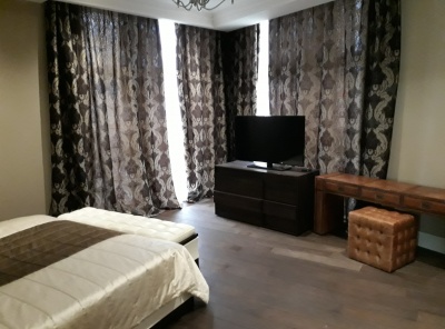 Аренда 2 комнатной квартиры площадью 90 кв.м. Новорижское шоссе 14 км от МКАД. Коттеджный поселок Павлово-2. Отличная, светлая квартира с дизайнерским современным ремонтом. Квартира полностью меблирована и оснащена самой лучшей мебелью и техникой от лучших европейских производителей. Окна выходят в тихий двор. Большое количество машиномест у дома.Планировка: прихожая, просторная кухня-столовая-гостиная с лоджией, с/у, хозяйская спальня с большим с/у и гардеробной.