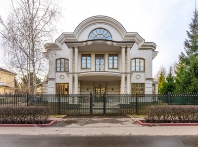 Продажа загородного дома общей площадью 420 кв.м. Новорижское шоссе, 19 км от МКАД. Коттеджный посёлок Миллениум парк. Дом построен в 2 этажа, под ключ , без мебели. Дом расположен в тупиковом месте с выходом в парк и к озеру. Спокойные классические интерьеры, все сделано с душой и со вкусом, в отделке использованы мрамор и натуральное дерево. Участок 15,6 соток.Планировка: 1 этаж - гостиная, столовая, кухня, терраса, постирочная, прихожая, с/у, спальня с с/у, котельная,2 этаж - 3 спальни каждая с гардеробной и с/у .