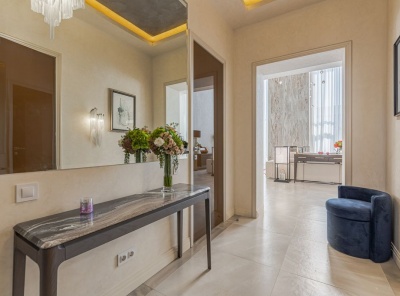 В премиальном комплексе Парк Рублево на 1-м км Новорижского шоссе предлагается на продажу комфортабельная 3-комнатная квартира общей площадью 136 кв.м. Стильный дизайнерский проект оформления интерьеров, который подчеркнет особый вкус своих владельцев. Коллаборация современного стиля и элементов арт-деко создает идеальное пространство для комфортного проживания и полноценного отдыха. Для оформления помещений применялись качественные натуральные материалы, эксклюзивные элементы текстиля и освещения.