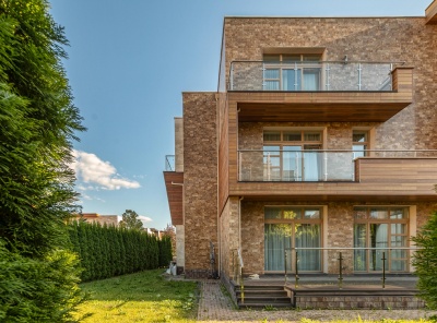 Аренда таунхауса общей площадью 360 кв.м. Новорижское шоссе, 23 км от МКАД. Коттеджный поселок Парк Авеню. Таунхаус построен из кирпича в 3 этажа. Отделан натуральными материалами такими как дерево и травертин. Выполнен высококачественный ремонт в стиле современной классики в теплых тонах. Панорамное остекление делает все помещения светлыми. Участок 4 сотки.Планировка:1 этаж: кухня-столовая-гостиная с камином, гардеробная, кабинет, гараж на 1 м/м, с/у.
