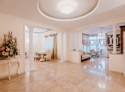 Продажа загородного дома общей площадью 670 кв.м. Коттеджный поселок Мэдисон Парк. Новорижское шоссе, 19 км от МКАД. Коттедж построен в 3 этажа, полностью меблирован и готов к проживанию. Фасады выполнены из натурального светлого камня. На цокольном этаже расположены СПА-зона с купелью и джакузи, комната отдыха с мини-кухней. Дом для персонала и гараж на 2 м/м располагаются в отдельном здании. На участке находится беседка с барбекю-зоной. Участок 18 соток обустроен пешеходными дорожками, освещением и системой авто-полива.