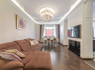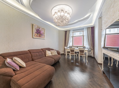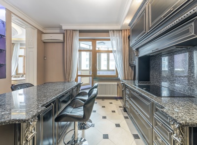 Продажа 4-комнатной квартиры площадью 156 кв.м. с дизайнерским ремонтом. Метро Университет, 1 минута пешком. Ломоносовский проспект, дом 25к3. ЖК Доминион. Квартира полностью меблирована. Теплая элегантная атмосфера. Ремонт выполнен из импортных высококачественных и экологических материалов - светлые ненавязчивые тона эффектно контрастируют с благородным массивом темных оттенков в паркете и дверях, создавая особую атмосферу домашнего уюта.Английская кухня из массива, оборудована современной бытовой техникой Neff.