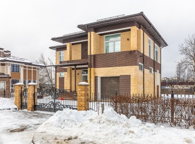 Продажа загородного дома площадью 265 кв.м. Коттеджный поселок Покровский. Новорижское шоссе, 23 км от МКАД. Дом построен в 2 этажа, с отделкой в современном стиле и панорамным остеклением. Дом расположен на тупиковой улице. Участок 14 соток правильной формы в тихом месте поселка, недалеко от озера.Планировка:1 этаж - кухня-столовая, гостиная с камином, постирочная, кладовая, гардеробная, бойлерная, гараж на 1 м/м.2 этаж - 4 спальни, гостиная, 2 балкона, сауна, 3 с/у.
