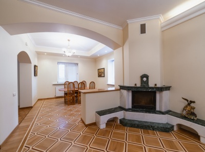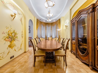 Аренда загородного дома площадью 480 кв.м. Коттедж построен в 3 уровня. Полностью готов к проживанию. Роскошная отделка классическом стиле. Встроенная кухня с бытовой техникой. Просторный участок 20 соток с ландшафтным дизайном и беседкой-барбекю. Гараж на 2 авто. Планировка:1 этаж - холл, гардеробная, кухня, столовая, гостиная с камином и выходом на террасу, гостевой c/у, сауна, блок для персонала с отдельным входом ( 2 спальни, кухня, с/у), котельная, гараж на 2 авто2 этаж - хозяйская спальня с с/у и гардеробной, 2 спальни с 1 ванной, спальня с с/у.