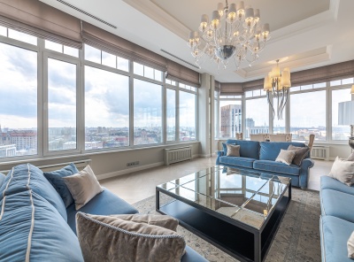 Продажа Пентхауса с жилой площадью 350 кв.м. и террасой. Метро Шаболовская 9 минут пешком. Шаболовка дом 10к1. ЖК Созвездие капитал-2. Пентхаус с панорамным видом на центр города, телебашню, МГУ, Воробьевы горы. Проект выполнен в стиле современной классики, абсолютно новый ремонт. Уникальной особенностью является терраса и большое количество панорамного остекления.