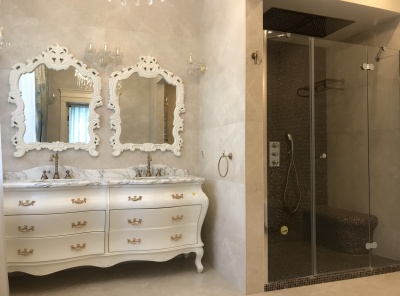 Продажа загородного дома общей площадью 450 кв.м. Новорижское шоссе, 23 км от МКАД. Коттеджный поселок Монтевиль. Дом построен из кирпича в 2 этажа. Выполнен высококачественный ремонт в современном классическом стиле. Участок 20 соток.Планировка:1 этаж — кухня-столовая, гостиная со вторым светом, гостевая спальня, с/у, гараж на 2 авто,2 этаж — 2 спальни со своими гардеробными комнатами и с c/у,Мансарда — просторная комната свободного назначения.