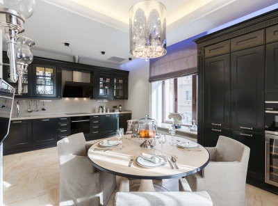 Аренда 5-комнатной двухуровневой квартиры площадью 214 кв.м. Метро Сокол, 1 минута пешком. Ленинградский проспект 76К2 . ЖК Соколиное гнездо. Квартира полностью меблирована. Ремонт выполнен в современном стиле. Имеется вся необходимая бытовая техника.Планировка:1-й уровень: кухня, гостиная, столовая, кабинет.2-й уровень: две спальни, 3 с/у, гардеробная комната.