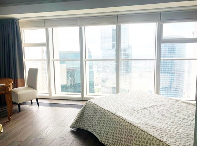Аренда 1-комнатных апартаментов площадью 106 кв.м. Метро Деловой центр, 1 минута пешком. Пресненская набережная 8с1. ЖК Город столиц, башня Москва. Апартаменты полностью меблированы. Ремонт выполнен в современном стиле. Имеется вся необходимая бытовая техника. Кондиционирование всех комнат. Панорамный вид на Москву. Планировка: кухня-столовая-гостиная, спальня, 2 ванных комнаты.