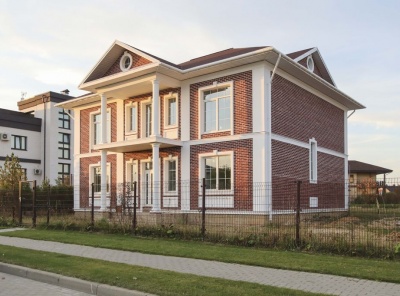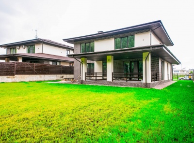 Продажа загородного дома площадью 350 кв.м. Новорижское шоссе, 23 км от МКАД. Коттеджный поселок Новорижский. Дом построен из кирпича в 2 этажа под ключ. Лаконичный дизайн архитектуры, продуманная планировка, панорамное остекление и высокий уровень отделки, делают это предложение лучшим на рынке. Фасад отделан немецким клинкером и имеет современное архитектурное освещение.