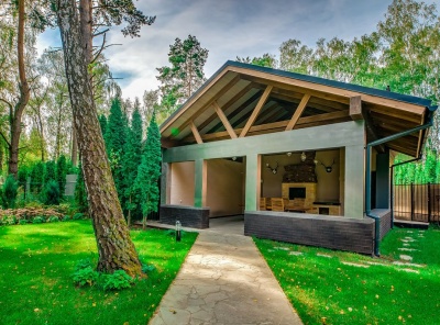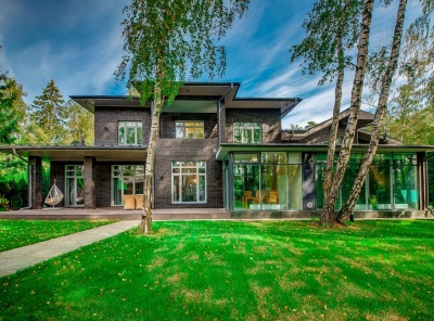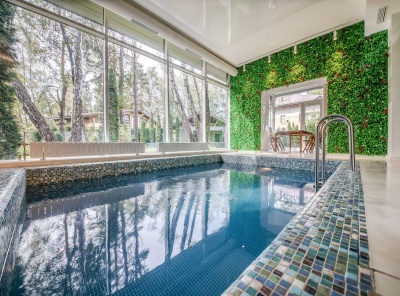 Бассейн Продажа загородного дома общей площадью 600 кв.м. Новорижское шоссе, 13 км от МКАД. Коттеджный поселок Николо-Урюпино. Дом построен в 2 этажа из кирпича. Отделка выполнена в современном стиле. В доме панорамные окна, красивые виды на лес, камин, уютная терраса, беседка с барбекю, бассейн и сауна. Лесной участок 15 соток. На участке высажены туи в качестве живой изгороди, беседка с барбекю, автополив, освещение.