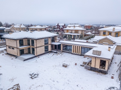 Продажа дома общей площадью 800 кв.м. Коттеджный поселок Миллениум Парк. Новорижское шоссе, 19 км от МКАД. Дом построен в 2 этажа из кирпича в современном стиле под чистовую отделку. Просторные комнаты и грамотная планировка. В проекте дома много балконов. Фасад отделан камнем. Участок площадью 27 соток расположен в готовой части поселка. Все соседи построились.