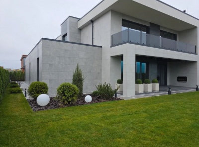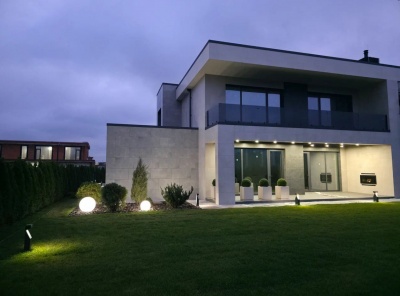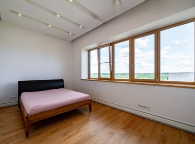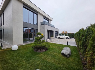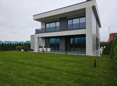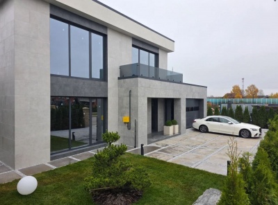 Продажа загородного дома площадью 380 кв.м. Рублево-Успенское шоссе, 25 км. от МКАД. Коттеджный поселок Маслово. Современный двухэтажный дом с панорамными видами на живописный хвойный лес — идеальное сочетание передовых технологий и природной гармонии. Просторные, наполненные светом интерьеры благодаря панорамному остеклению ALUMARK создают ощущение легкости и открытости, предлагая захватывающие виды на величественные сосны, окружающие участок.