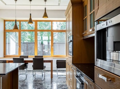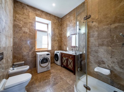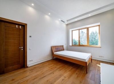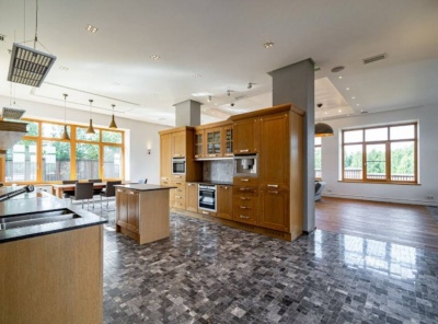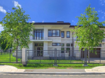 Продажа загородного коттеджа площадью 863 кв.м. Коттеджный посёлок Барвиха - XXI. Рублёво-Успенское шоссе, 6 км от МКАД. Дом построен в 2 этажа. Фундамент здания монолитная железобетонная плита днища цокольного этажа. Стены цокольного этажа монолитные железобетонные, по стенам предусмотрена гидроизоляция в два слоя и утепление. Террасы монолитные железо-бетонные. Оконные блоки и витражи деревянные из лиственницы с двухкамерным стеклопакетом. Газовый котел фирмы «Viessmann» 160 кВт.
