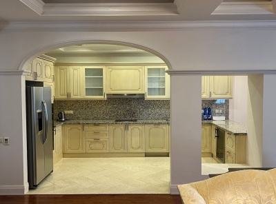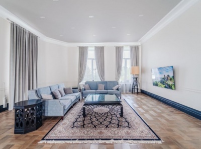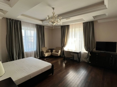 Аренда загородной квартиры общей площадью 168 кв.м. Новорижское шоссе, 20 км от МКАД. Коттеджный поселок Агаларов Эстейт. Просторная квартира расположена на третьем этаже трехэтажного дома. Интерьер оформлен в классическом стиле, в отделке использованы обои, паркетная доска из массива ореха, мрамор, сантехника Villeroy&Boch, испанские смесители и аксессуары Devon&Devon в санузлах.Резиденция укомплектована мебелью, светильниками, кухонным гарнитуром изИталии, Англии и США, установлена бытовая техника AEG, Liebherr иSide-by-Side.