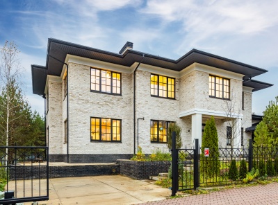 Продажа загородного дома площадью 1100 кв. м. Ильинское шоссе, 22 км от МКАД. Коттеджный поселок Европа-1. Светлый просторный дом построен в 2 этажа, под ключ. Помимо основного дома, на участке расположен гостевой дом с гаражом общей площадью 210 кв.м. Ландшафтный дизайн участка разработан в индивидуальном порядке и включает в себя различные декоративные кустарники, плодовые и хвойные деревья. Изюминкой участка является ухоженный живописный пруд. Дорожки на территории участка вымощены брусчаткой, а подъезды к дому и гаражу - клинкерной плиткой.