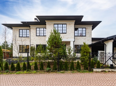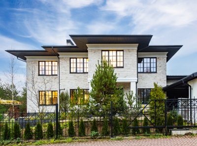 Продажа загородного дома площадью 250 кв.м. Новорижское шоссе 23 км от МКАД. Коттеджный посёлок Новорижский. Архитектура дома выполнена в современном стиле, где основное внимание уделено выразительности форм и свободе планировочных решений. Фасад облицован натуральным дагестанским камнем, установлены алюминиевые окна, а территория вымощена премиальной брусчаткой Steingot. Забор оснащён автоматическими воротами с электроприводом. Выполнена высококачественная отделка.