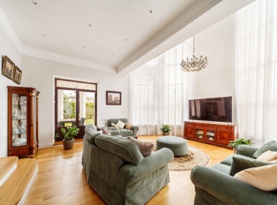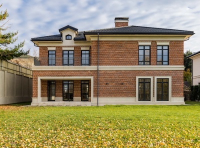 Продажа загородного дома общей площадью 565 кв.м. Рублево-Успенское шоссе, 8 км от МКАД. Коттеджный поселок Барвиха. Дом построен в 2 этажа. Выполнена дизайнерская отделка под ключ. Архитектура выдержана в лучших традициях английского стиля: фасад из клинкерного кирпича и натурального камня, черепичная крыша, деревянные панорамные окна. Все элементы подчеркивают качество, долговечность и внимание к деталям. В доме предусмотрены современные инженерные системы, включая центральное кондиционирование.