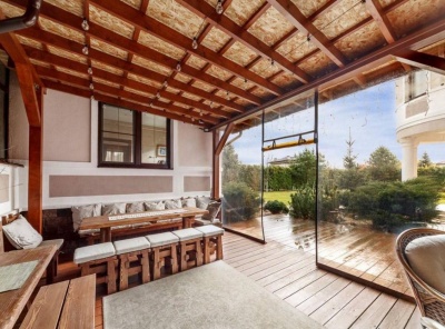 Продажа загородного дома общей площадью 570 кв.м. Коттеджный поселок Монтевиль. Новорижское шоссе, 24 км от МКАД. Дом построен в 2 этажа из кирпича. Выполнена дизайнерская отделка под ключ. Помимо основного дома на участке расположен гостевой дом площадью 190 кв.м., соединенные светлой отапливаемой галереей-оранжереей с основным домом. Мебель, паркет, керамогранит - все итальянских производителей, бытовая техника Miele. Отапливаемая галерея-оранжерея с выходом на террасу — это сердце всего владения.
