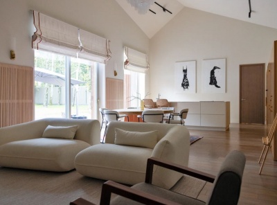 Продажа загородного дома общей площадью 550 кв.м. Коттеджный поселок Горки-8. Рублево-Успенское шоссе, 16 км от МКАД. Дом построен в 1 этаж, под ключ. Высокое качество строительства и отделки. Интерьер выполнен в скандинавском стиле с элементами рустика и contemporary: светлые пространства, натуральные материалы, фактурные акценты и воздушность создают гармонию уюта и масштаба.