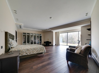 Продажа загородного дома общей площадью 800 кв.м. Новорижское шоссе, 19 км от МКАД. Коттеджный поселок Ренессанс Парк. Дом построен в 2 этажа. Отделка White Box. В главном доме установлена дорогая система кондиционирования с увлажнением, выполнены стяжки, потолки, подогрев пола, разведено полностью электричество и готовы выводы под розетки. Участок 35 соток с готовым ландшафтным дизайном и гостевым домом. Дом имеет непосредственный выход к озеру и в лесную прогулочную зону. Гараж на 3 м/м., с квартирой для персонала.
