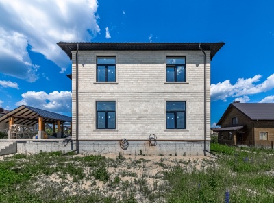 Продажа загородного дома общей площадью 360 кв.м. Коттеджный поселок Миллениум Парк. Новорижское шоссе, 19 км от МКАД. Коттедж построен в классическом стиле в 2 этажа, под отделку. Все разводки коммуникаций выполнены, стяжки залиты, стены готовы под покраску. Дом облицован натуральным камнем, имеет продуманную планировку и большую площадь остекления. На участке 16 соток уложен газон, по периметру высажена живая изгородь. Отдельно стоящий гараж 125 кв.м и квартира для персонала.