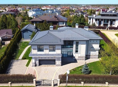 Продажа загородного дома общей площадью 750 кв.м. Новорижское шоссе, 19 км от МКАД. Коттеджный поселок Миллениум Парк. Дом построен в 2 этажа с отделкой в современном стиле. На благоустроенном участке 29 соток, с живой изгородью, декоративными и плодовыми деревьями, располагается гостевой дом с отделкой из клееного бруса, с подвальным помещением из монолита. Проведены современные инженерные коммуникации, по периметру ведется видеонаблюдение.