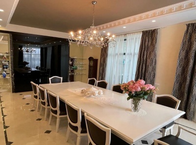 Продажа загородного дома общей площадью 1500 кв.м. Новорижское шоссе, 18 км от МКАД. Коттеджный посёлок Бенилюкс. Дом построен в 2 этажа. Под ключ. Фасад отделан сланцем и деревом. 6 спален с гардеробными, кабинет, 8 с/у, зимний сад, домашний кинотеатр, бассейн, хаммам, спортзал, бильярдная. Дом оснащён приточной и вытяжной вентиляцией, кондиционированием, автоматической регулировкой газового отопления и тёплых полов, а также оснащён системой «Умный дом». Благоустроенный участок 74 сотки с выходом к реке.