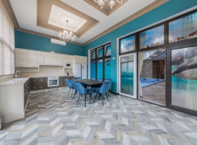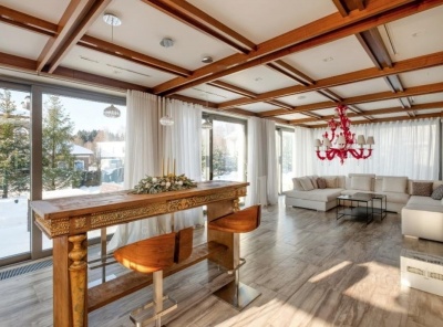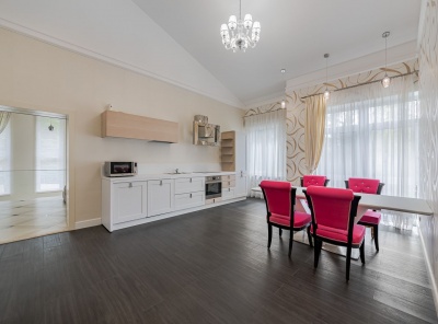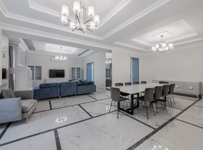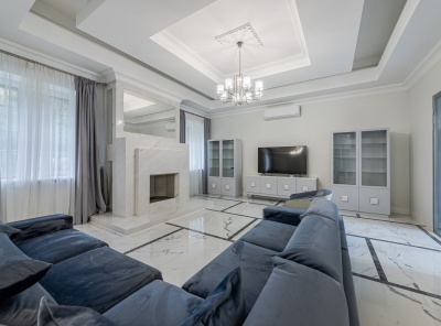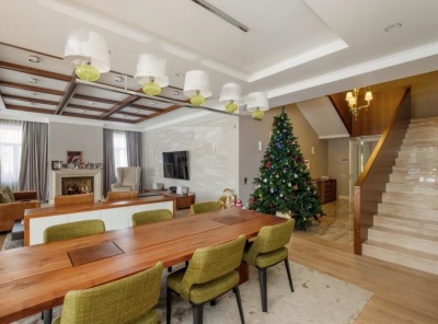 Аренда загородного дома с бассейном общей площадью 350 кв.м. Новорижскоешоссе,14 км от МКАД. Коттеджный поселок Новинки. Дом построен в 3 этажа под ключ. Выполнен качественный, эксклюзивный ремонт в современном неосклассическом стиле. Полностью меблирован и оснащен хорошей европейской, дизайнерской мебелью и техникой от лучших европейских производителей. Дом в отличном состоянии. Просторный, ухоженный участок 12 соток. На участке расположен гараж на 2 м/м с домом для персонала.