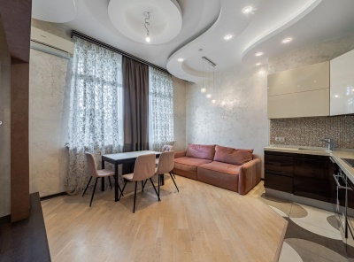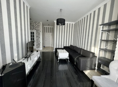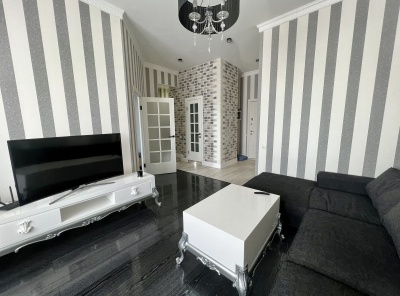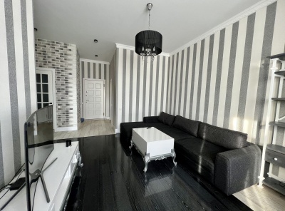 Аренда большой 2-комнатной квартиры площадью 46,6 кв.м. Новорижское шоссе 14 км от МКАД. Коттеджный поселок Павлово-2. Квартира полностью меблирована. Выполнен качественный, современный ремонт. Оборудована всей бытовой техникой и мебелью от лучших производителей.Планировка: Просторный холл-прихожая, гардеробная, с/у, кухня-столовая-гостиная, спальня.