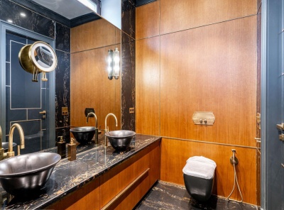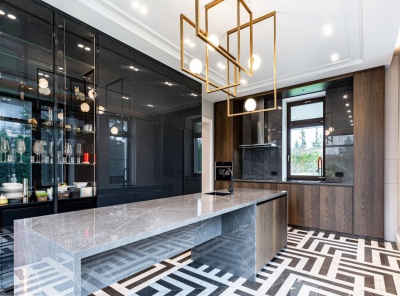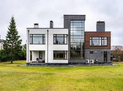 Продажа загородного дома общей площадью 490 кв. м. Новорижское шоссе, 19 км от МКАД. Эксклюзивный дом по дизайн проекту на большом участке. Отделка внутри полностью завершена. 3 спальни на втором этаже в отдельных блоках с санузлами и гардеробами. Возможность организовать спальню на первом этаже. Холл с латунной лестницей , двери, керамогранит, сантехника Италия на заказ со вставками латуни. Площадь участка 24 сотки.Планировка:1 этаж: гостинная с камином + столовая 55 кв.м, кухня с островом 28.2 кв.м.