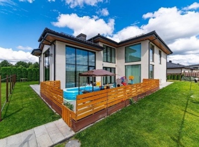Продажа загородного дома площадью 308 кв. м. Новорижское шоссе, 14 км. от МКАД. Коттеджный поселок Павлово-2. Дом построен в 2 этажа под ключ из качественных материалов. Современная отделка в светлых тонах. Дом полностью мебелирован и оснащен всей необходимой техникой от ведущих производителей. Просторный участок 10 соток с ровным газоном, высаженными деревьями. Также имеется парковка и мангальная зона. Планировка:1 этаж - прихожая, кухня-столовая, гостиная, спальня, с/у, гараж, бойлерная,2 этаж - 3 спальни, 2 с/у.